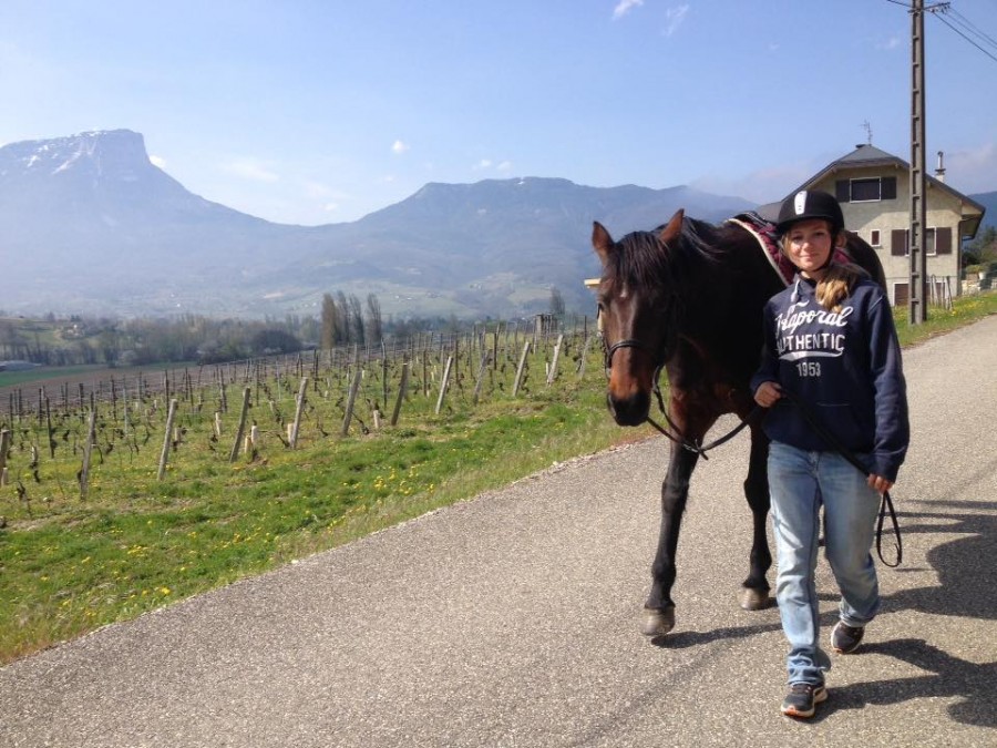 Du coup je le cale derrière la jument de ma mono, bien sympa parce qu'elle a jamais levé les fesses malgré qu'il ait le nez dans son cul ! Il aime pas trop mais il reste derrière. Les derniers mètres je suis devant, y a des chiens, des tondeuses, un mec qui tape au marteau, la jument de ma mono aime pas trop du coup elle bouge, le mien qui sait que la maison est là à 10m bouge aussi sans vouloir se stopper alors que y a la Nationale à traverser grrrr