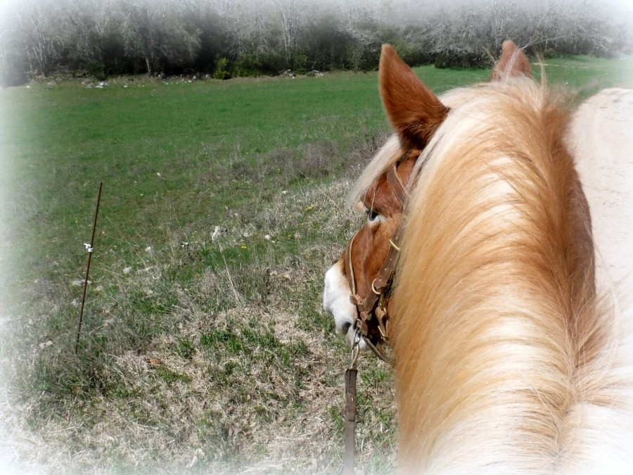 Pour la balade en dextre Pot devait être content , d'être le cheval monté à qui on prête le plus d'attention. Le fait de galoper avec First derrière à peut être donner des ailes à Pot. Heureusement qu'il est
