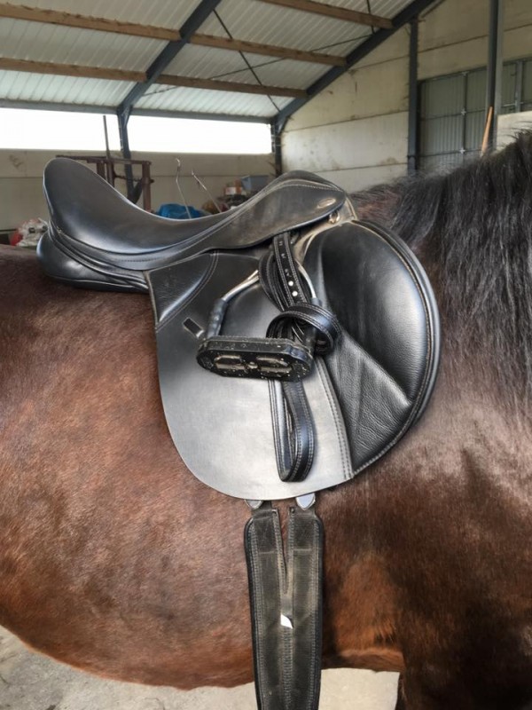 Saddlefitter passé aussi aujourd'hui! Suite à mon vol, j'avais réessayé deux selles "classiques" (Bates et Eric Thomas), il est toujours aussi mal foutu le pioupiou, donc j'ai rappelé mon sauveur. Ma selle volée (Thorowgood Endurance) existe maintenant de série avec un troussequin encore plus haut et élargi, ça fait vraiment dressage et y'a plus de marron