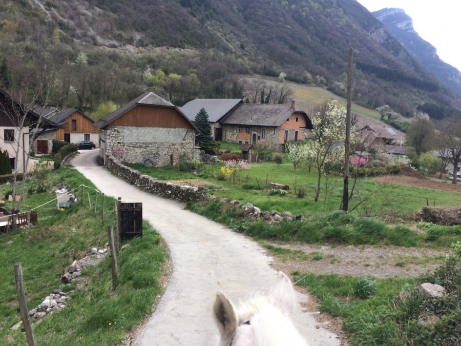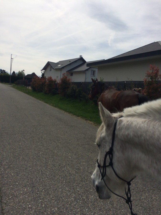 Vendredi balade de 7,3 km avec la jument en pension, sa proprio et Pinta !