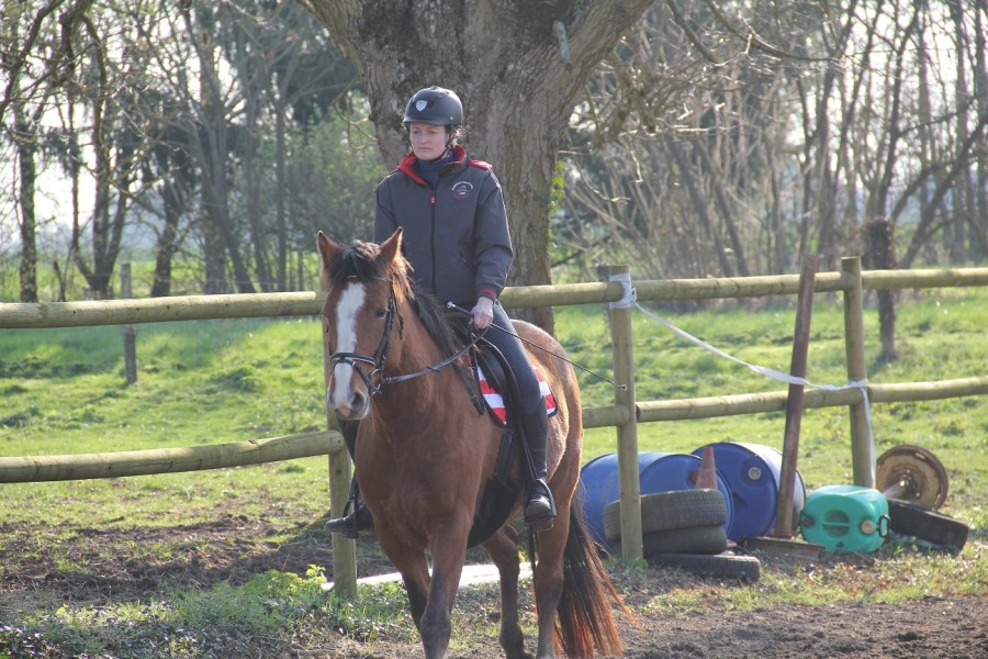 J'ai donc pris un cours le samedi suivant dans un premier temps afin de vérifier que sa boiterie était bien résorbée car au pré c'est délicat à voir! Plus de gêne que ce soit au pas au trot ou au galop.