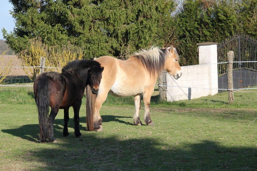 Dimanche dernier, Vitalyss et moi avons baladé avec une amie et ses ponettes! Monsieur a été intrigué et s'est pris pour un étalon.