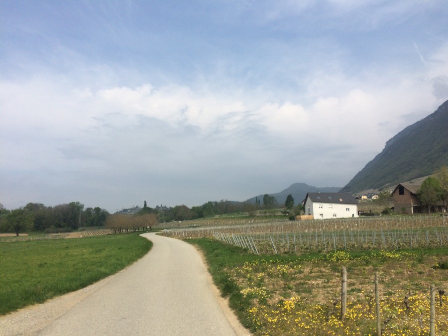 En plus de ça,en voulant éviter la balle balade dans les vignes, comme je la voyais sur le qui-vive, j'ai pris un chemin inconnu, c'était que de la caillasse, en montée.