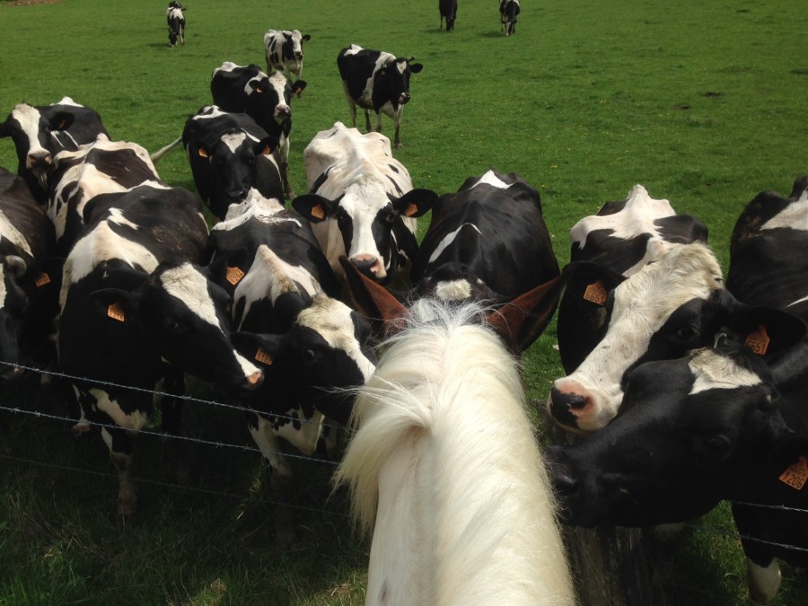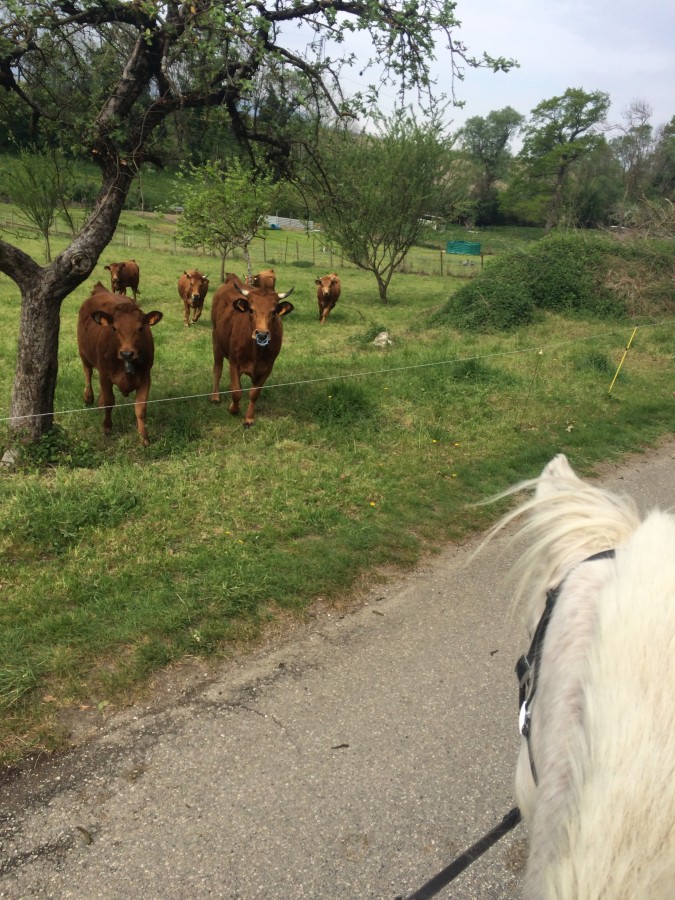mais j'ai écourté: elle était en alerte sur tout. Alors quand elle craint le tas de poussière des balayeurs, on rigole, quand elle fait des bisous aux vaches, on est contente.