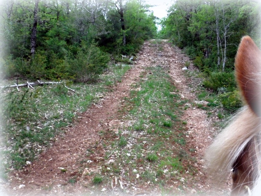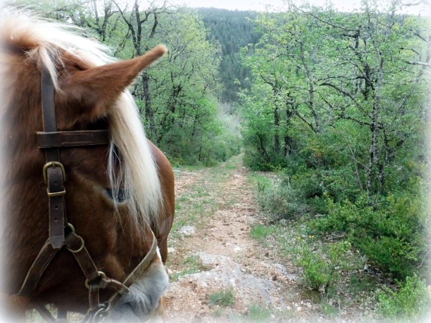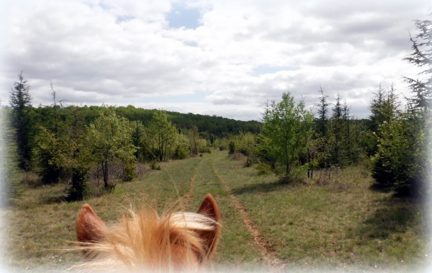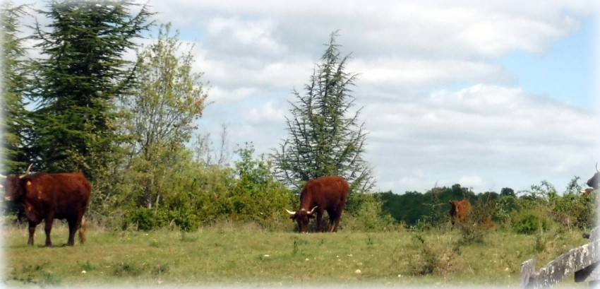 Je suis bien contente d'avoir un petit cheval car j'ai bien du mettre pied à terre 5 fois. ( belle descente empierrée la fameuse montée des barrières fermées et des clôtures électriques .... les salers sont de retour v et vont tourner sur le causse toute la saison