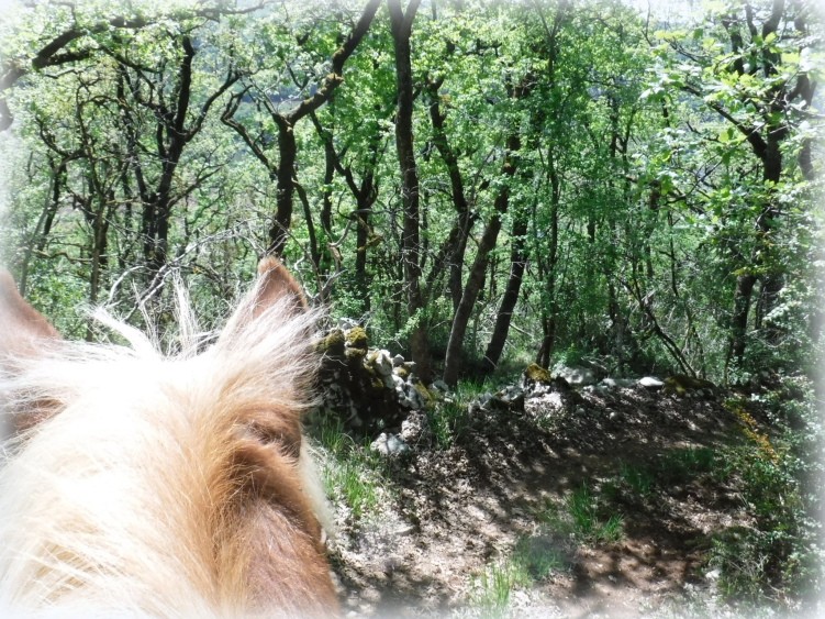 Ensuite j'ai abandonné l'idée de la boucle pour suivre des pistes qui fleuraient bien le galop dans les sous-bois. Bon il a pas trop galopé. Et c'était des culs-de-sac. Mais c'était beau... alors on a profité de la balade. Et de la pause broute, parce qu'en haut, l'herbe était bonne !