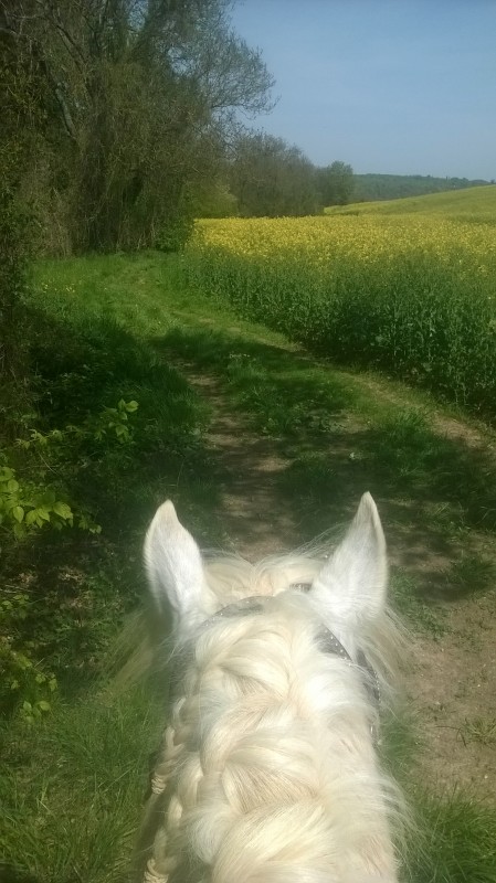 J'avais repéré un circuit boucle un peu bizarre, et pas forcément fait pour les chevaux, mais j'en avais assez de tourner sur les chemins pourris et je ne vais pas mettre Simbad dans du coton sous prétexte que Môssieur a peur de tout, donc zou, DEHORS.