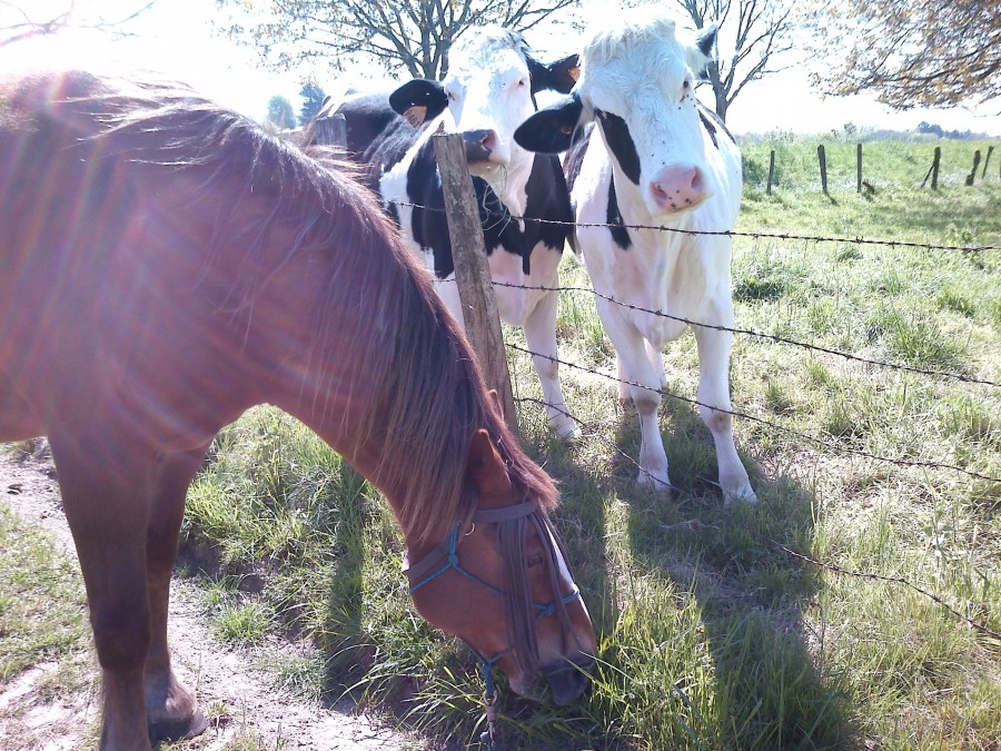 Il s'est pris une fessée au départ parce qu'il a commencé à être méga pénible (j'étais à pieds, il traînait, ralentissait, s'arrêtait... au bout de 10 mètres il s'est pris un coup de stick sur les fesses, ça l'a concentré un peu plus) et après il n'a pas fait mine de vouloir faire demi-tour, il n'a pas henni. Quand on a pris au carrefour à droite alors que le tour habituel part à gauche, il a fallu lui dire "non non je t'assure qu'on va à droite", mais c'était juste de la résistance interrogative comme il sait faire.