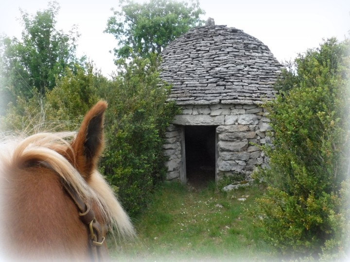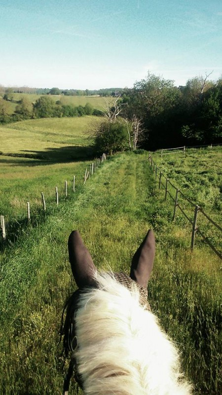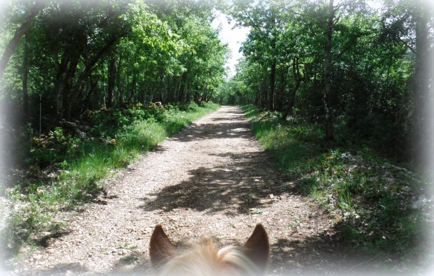 Pot' a repris le travail sérieux en carrière, et on fait nos sorties en licol aux trois allures. Il est moins fin, moins sensible mais il connait les chemins par coeur, alors à quoi bon se servir des mains ? Droite, gauche, on tourne le buste et en avant