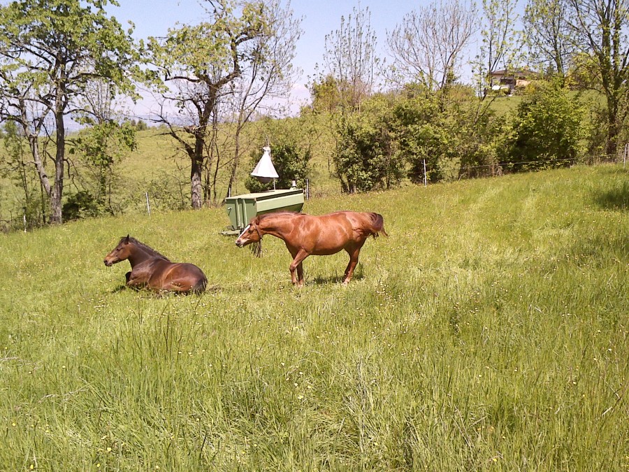 Pinta glisse sur une pierre lisse et calcaire en montée... Les hipposandales n'accrochent pas, les postérieurs non plus ... Résultat: elle se couche, pour éviter de ne tomber trop lourdement et de se faire mal ( ma jument me surprend toujours, j'étais plus paniquée qu'elle! ) . Elle tente de se relever, impossible, elle tombe ( pas de haut heureusement 30cm environ) , puis au deuxième essai, elle réussi à se lever... OUF !