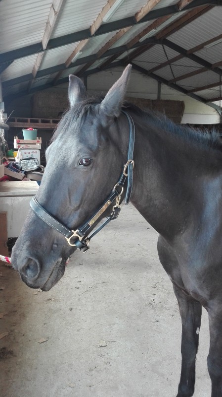 Alors visite de la jument...qui n'avait rien à voir avec l'annonce ou l'ex photos...qui dataient de l'an passé ? Jument maigre et sans muscle, mauvais poil... j'ai quand même regardé la nana monter, mais elle se bat pour le mise sur la main.. bref, une juju qui a tout à apprendre...a 9ans! J'ai appris qu'elle n'avait jamais rien fait. Là proprio la quand même achetée 9000? à 5ans mais savait à peine monter...