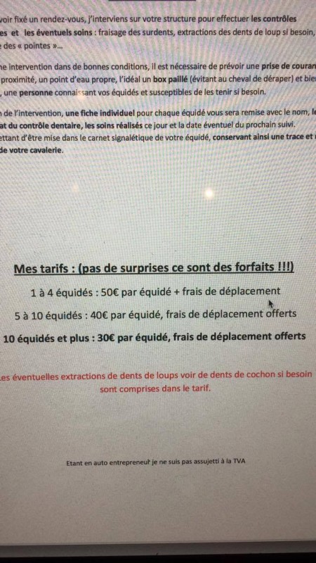 Ici je pense qu'on a 4 chevaux à faire voir, peut-être 5, curieuse de voir ce qu'on va nous demander dans notre cambrousse (de toute façon je n'ai guère eu le choix de la dentiste!)
