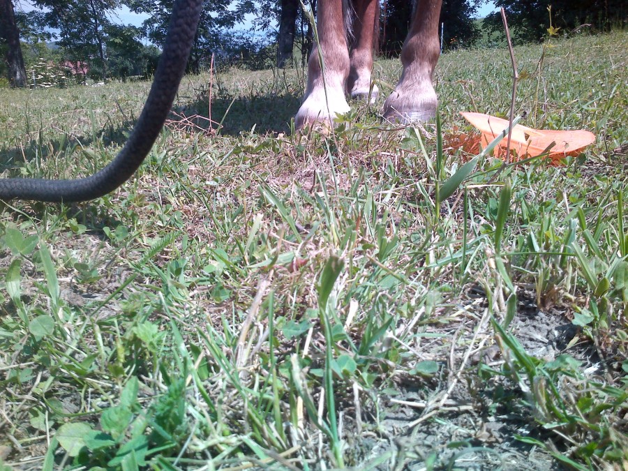 Mais louloute zen, elle démarre le trot à la voix, et " marcher" aussi, c'est donc rênes longues tout le long. Elle ne bronche pas quand on change de direction, ne se surprend de rien. Bon, le galop est quand même pas très dynamique, mais je pense que ça ira mieux si elle perd un peu de poids. Et puis, au moins, elle est fiable!