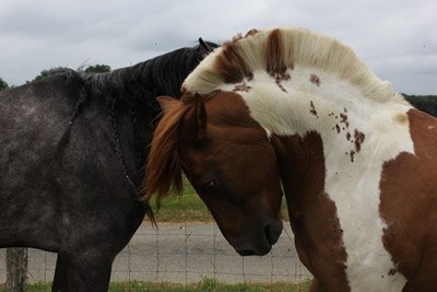 J'étais très anxieuse à son arrivée, je me demandais si je n'étais pas la reine des nouilles et que je n'avais pas fait une énorme erreur. J'ai passé deux heures au pré avec Apache et Salbaï, déjà parce qu'il est toujours drôle de se moquer de deux mâles qui couinent à qui mieux mieux et aussi pour m'assurer que le petit nouveau se trouve bien, ne soit pas trop perdu.