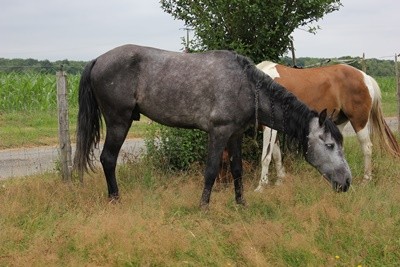 saphir54 Le grand gris, c'est un PRE que je suis allée voir il y a 2 semaines. 6 ans, 1m60 à peu près, juste débourré, encore beaucoup de boulot pour en faire un bon baladeur et de l'état à reprendre.