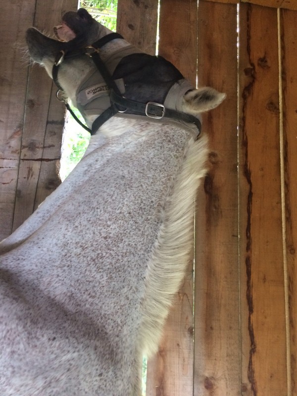 Pendant la détente au galop il m'a embarqué un peu, m'a filé des coups de dos, a hennit... mais gérable. C'était gentillet, pour montrer son impatience, son inquiétude. Rien de plus, aucune méchanceté.