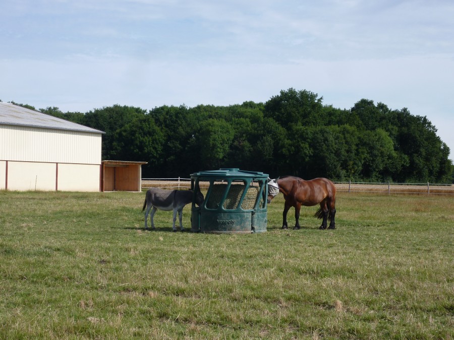 Oui, il nous reste encore un peu d'herbe dans ce pré. Et pourtant, le proprio nous a mis un round de foin , au cas ou !!!