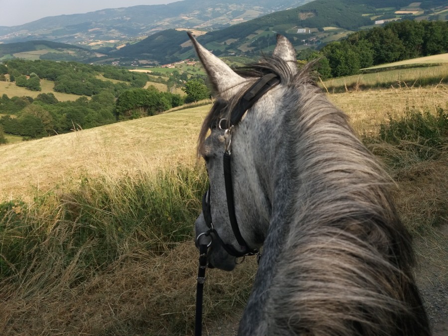 Pour finir on a fait trois galops dans un immense champ de chaume! pourquoi trois? bah d'une seule traite ça fait beaucoup pour une louloute un peu grassouille et surtout qui ne maintenait pas vraiment le galop ces derniers temps. Alors on a entrecoupé de quelques pas et trot...