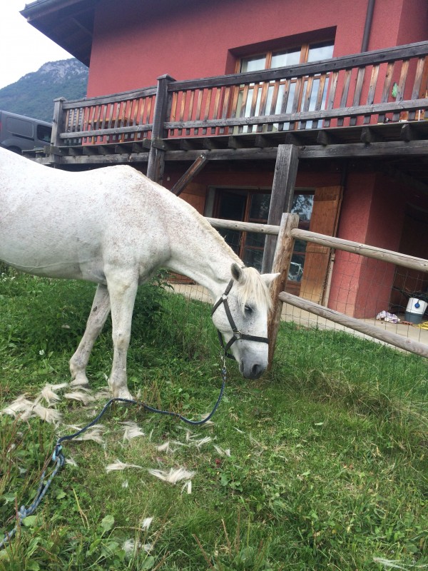 En rentrant j'ai appris qu'Amour était boiteux, ça vous le savez déjà. D'ailleurs je continue les soins, je désinfecte tous les jours à l'eau oxygénée vu qu'il n'a pas de pansement et je fais des bains de bicarbonate, 1 à 2 par jour, 3 grosse cuillère diluée dans 10 L d'eau, pendant 10 à 15 min. + un peu de marche sur du béton et au paddock.