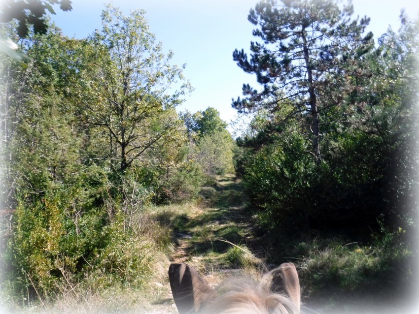 Avant de partir j'ai repérer sur la carte un chemin qui descend par le bois, là en bas