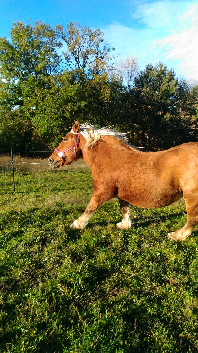 Non Luna n'a jamais été attelée, c'est mon plus grand regret avec elle. C'était un souhait, mais le débourage c'est mal passé, ... donc on en est restée aux LR