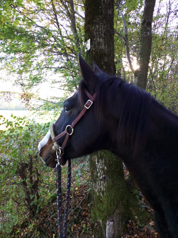 aux trois allures. Elle était zen et confiante, sauf vers la fin en voyant les chevaux de la ferme au loin ,elle a hénni, accéléré..Mais a fini par retrouver son calme...