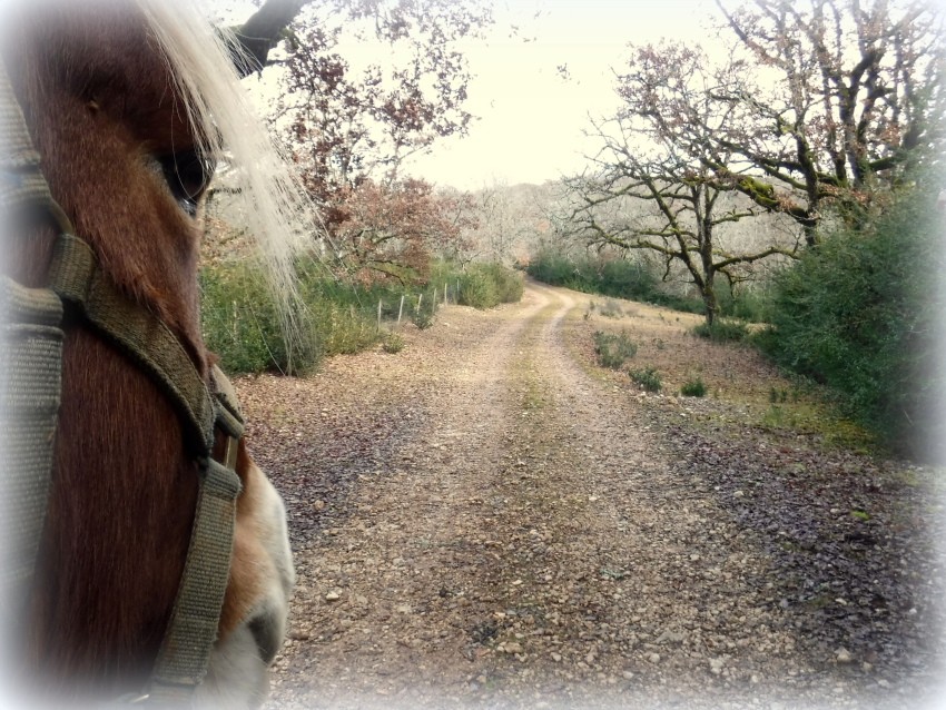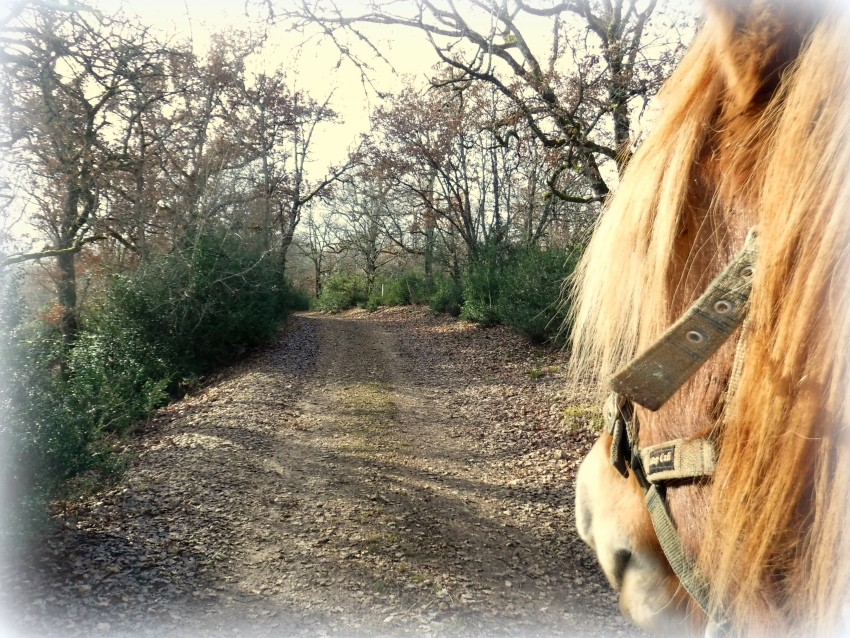 Là on bosse plutôt sur la confiance, vu que le début a été mouvementé (accident et deux grosses chutes au montoir). Et pour le coup, les balades nous font un bien fou !! (puis j'adore ça... et lui aussi, ça tombe bien !)