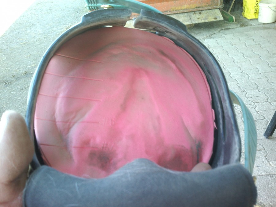 Ce matin, j'ai retiré un gros caillou tout en longueur et bien tranchant du pied de Quartz. Il était bien caché au fin fond de la lacune médiane, à moitié enfoncé dans la fourchette. Je n'avais rien vu, mais c'est le bruit en curant qui m'a mis la puce à l'oreille...