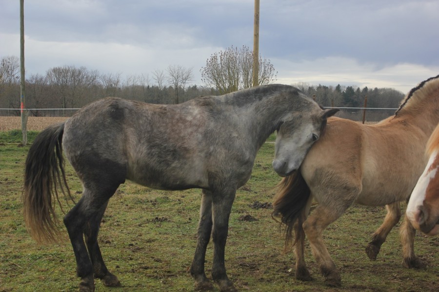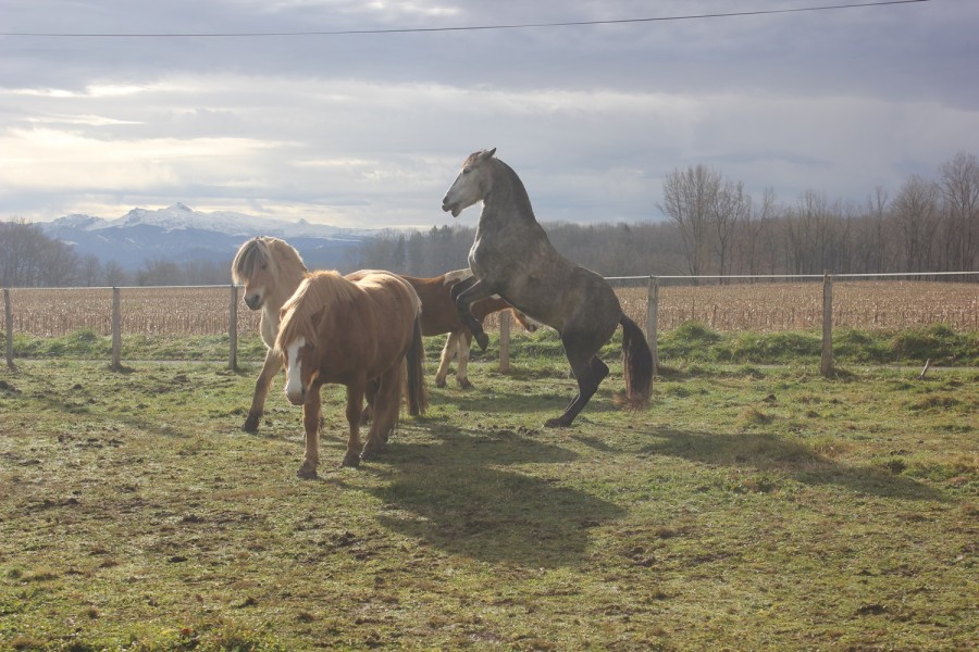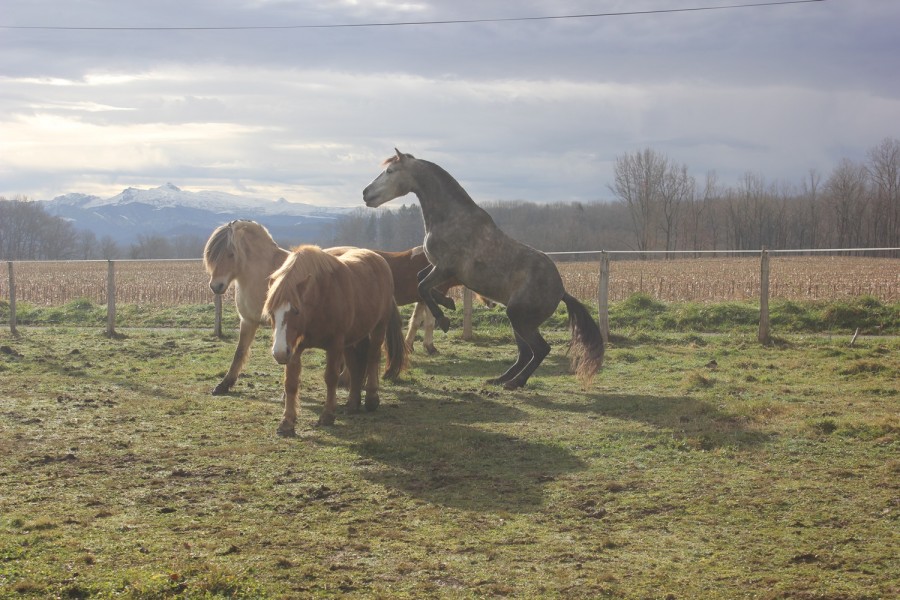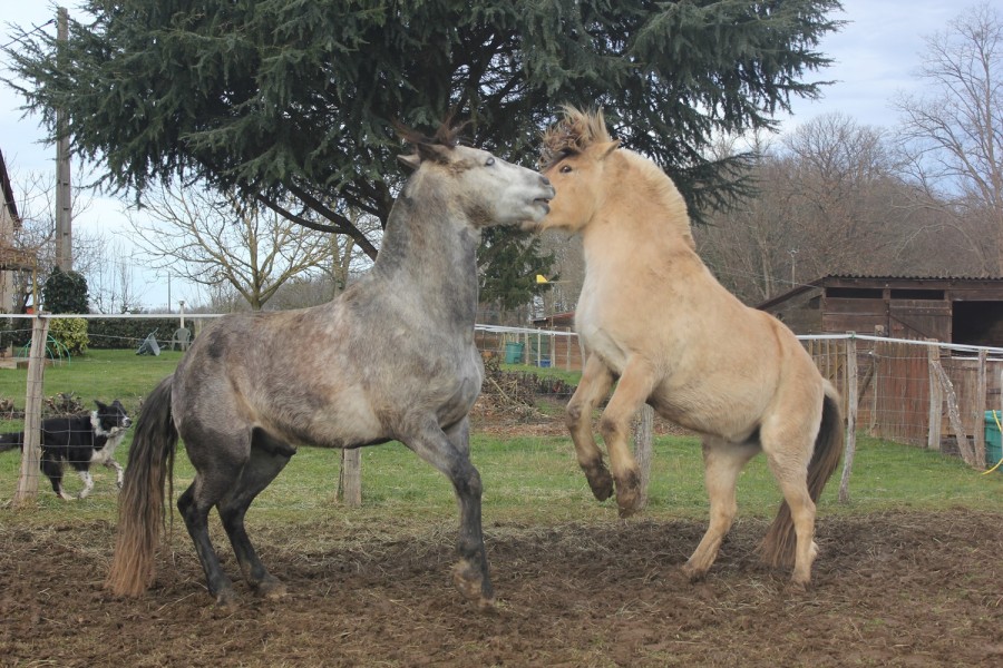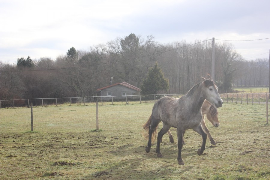 Ensuite on a pu trotter sur le seul chemin en herbe du parcours, qui longe un champ avec des ânes. Elle ne les avait pas vu et quand elle les a aperçu, elle a henni tout en trottant j'étais morte de rire toute seule comme une quiche !