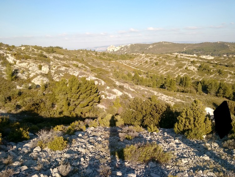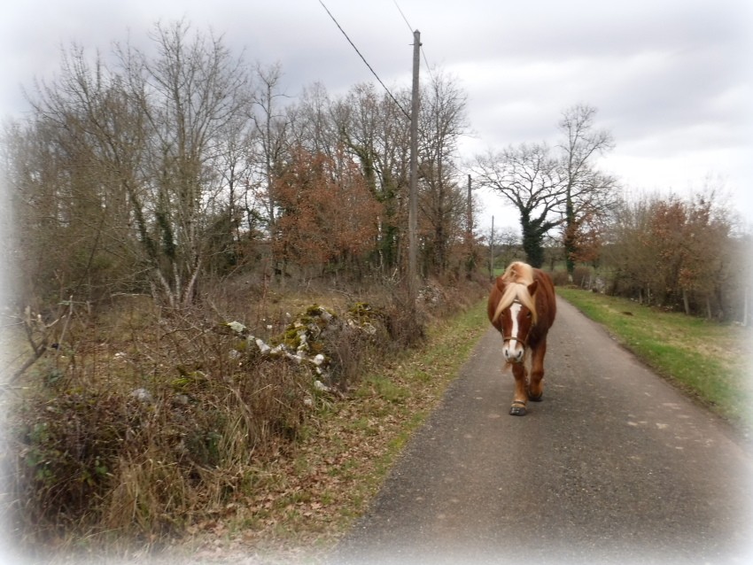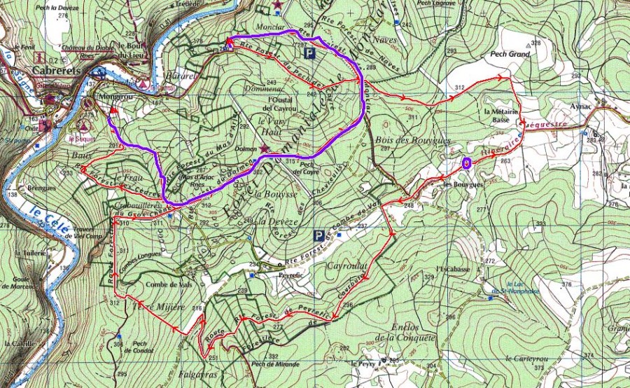 Avec Luna on est donc remonté d'un côté pour redescendre vers le village de l'autre côté. Luna connaissant bien le causse ( à force ) c'est bien rendu compte qu'on se rapprochait de la maison ( petit rond violet) pour s'en éloigner à nouveau ... comme si on repartait.