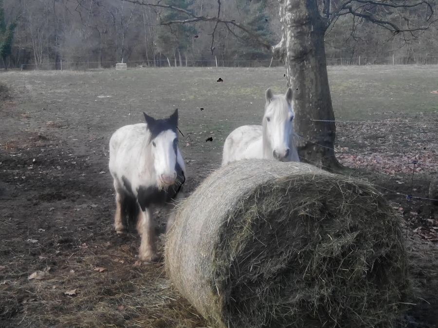Nous y'a eu des flocons misérables, mais on était tous contents (si, si... "OMG IL NEIGE" "ah bon ?" "OUI REGARDE YA UN FLOCON LA !!"), du coup je suis allée au cheval ! Voir mon bébé. Le vent s'est levé d'un coup, j'ai cru que j'allais pas survivre au trajet (à vélo dans des virages, avec le mistral, le meilleur dont on puisse rêver). Aquino était pas au top, genre super content de me voir, hennissement et il me suivait, mais alors interdiction suprême de le toucher... Après il est comme ça. Avec le froid et le vent, j'imagine qu'il devait pas être bien. Mais bon, j'lui ai demandé comment j'allais lui mettre le licol s'il me laissait même pas le toucher ! Du coup on a joué dans le manège, je l'ai très, très vite retrouvé, et j'ai même réussi un petit galop en cercle autour de moi en liberté