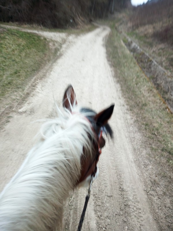 Mais j'avais un peu oublié comment elle est seule... les blocages soudains qui imposent d'être en recul, son trot qui secoue, et ses frayeurs dignes d'un poulain...Bon, malgré tout les sorties en dextre ont dû l'aider car elle est mieux et moins à regarder de tous côtés.