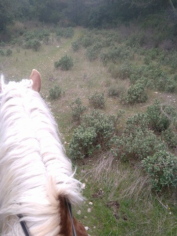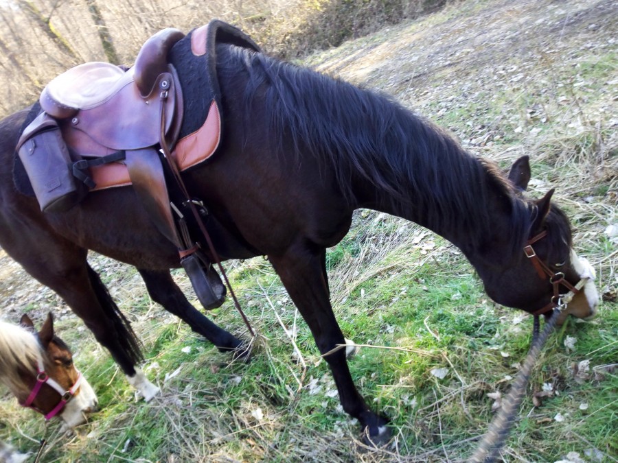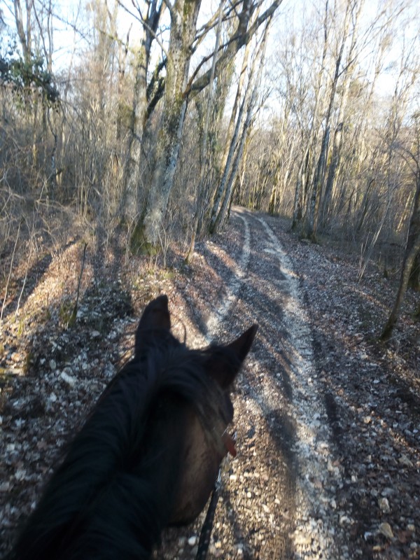 Y'avait des petits chemins pas mal, qu'on connaissait pas du tout, il a été vraiment top. Puis je me sens beaucoup plus en confiance, même s'il va me piquer le trot je vais pas réagir "ohlala vite faut que je l'arrête avant que ça parte en steak", du coup plus détendu dans mes demandes et j'ai parfois des réponses (sinon on part sur un cercle).