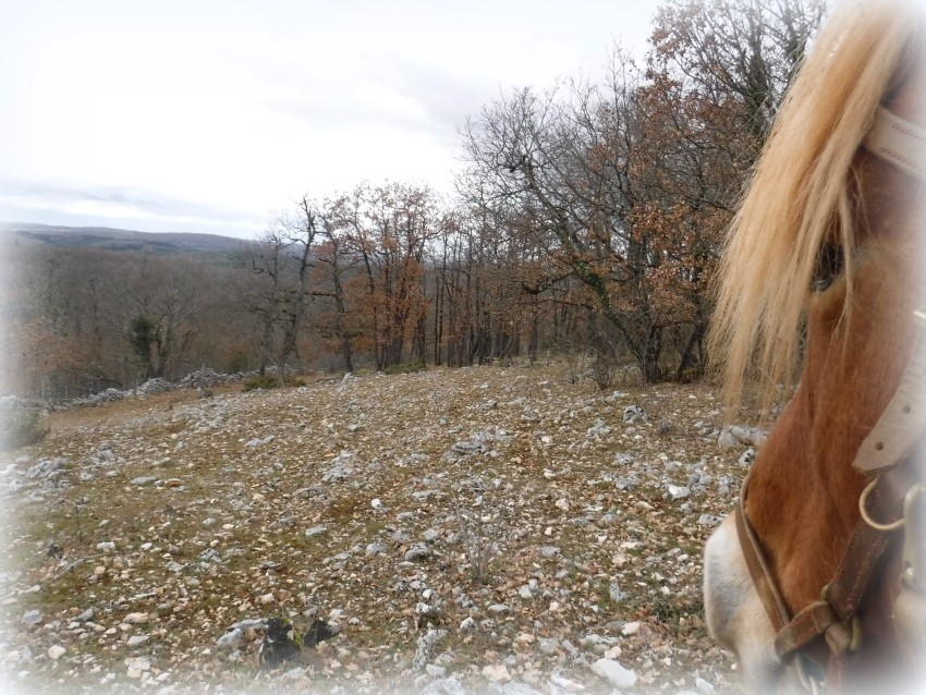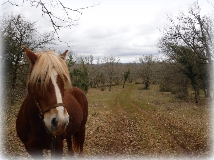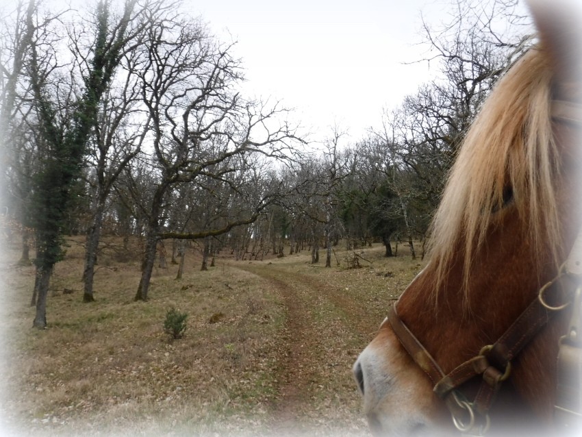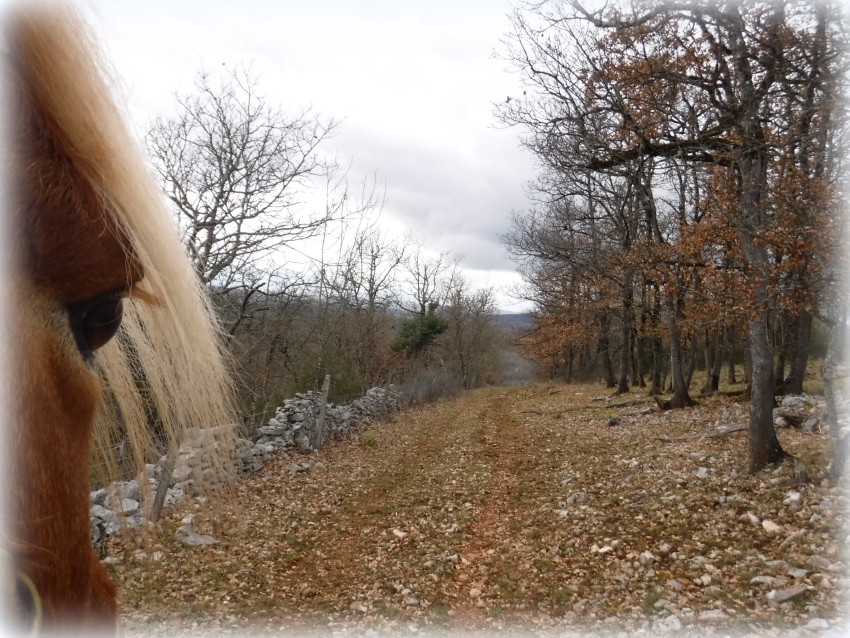 On aura fait petit aujourd'hui: 3.8 km mais avec environ 3 km de chemin qu'elle n'a jamais fait. C'est sur la propriété du voisin. Un beau chemin qui monte dans un bois de chênes