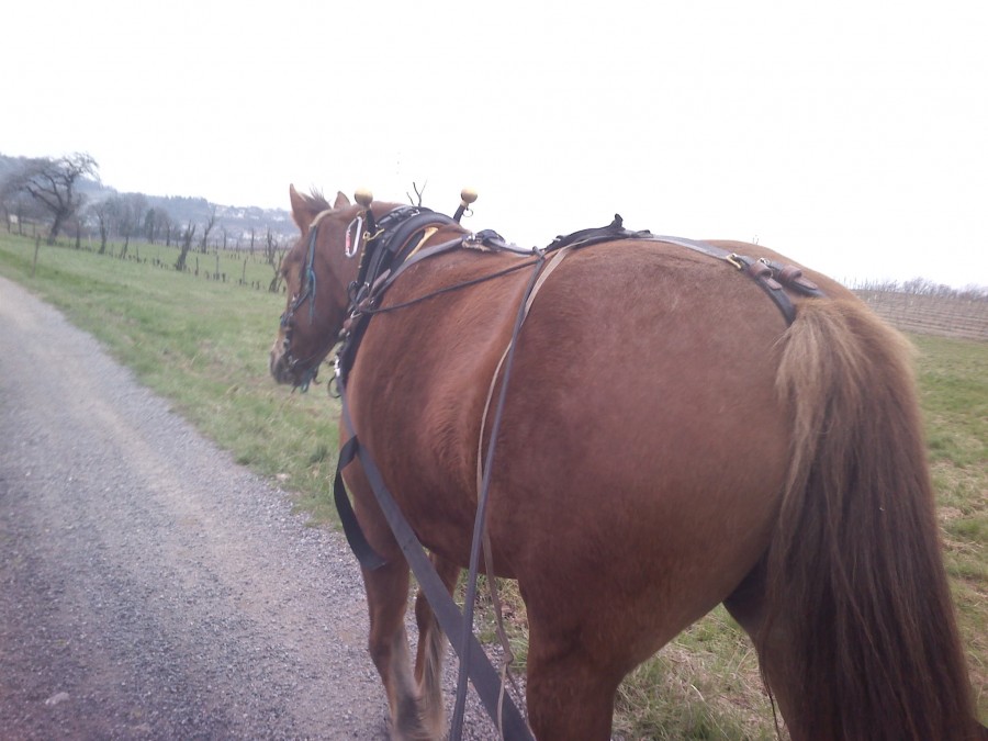 Ce matin belle barre dans la nuque, du coup on est partis promener à pieds. J'ai pris le chemin plein de cailloux, ben il a pas aimé, il boudait pas mal. J'ai fait aussi en liberté :