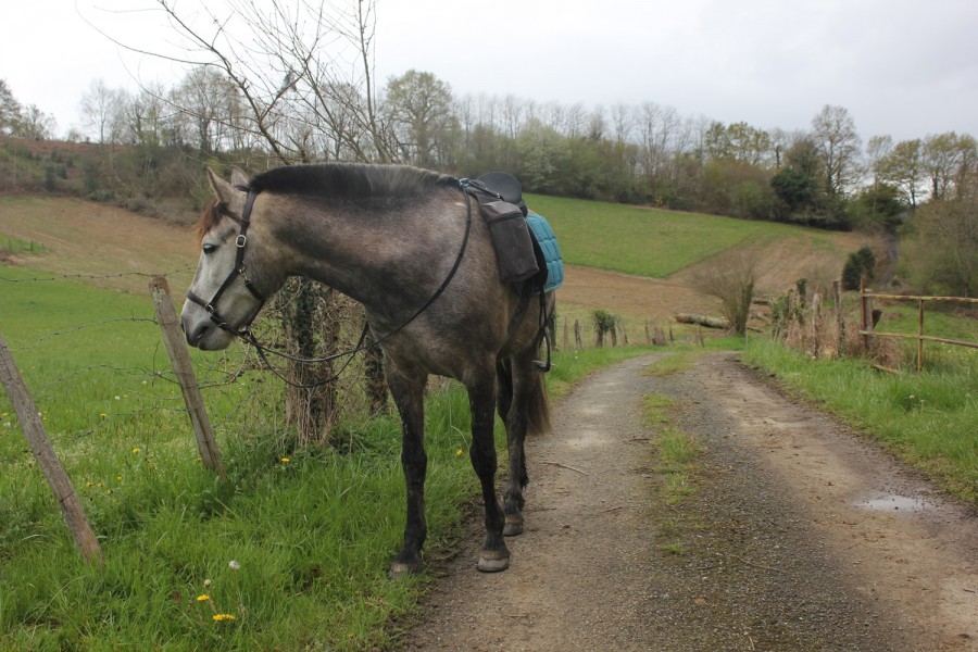 Je lâche l'affaire et je fais demi-tour à pieds. Salbai me suit laborieusement à travers la petite forêt (Dieu, qu'il est maladroit!) et je fais une pause en retrouvant la route de campagne qui nous ramène vers notre vallée.