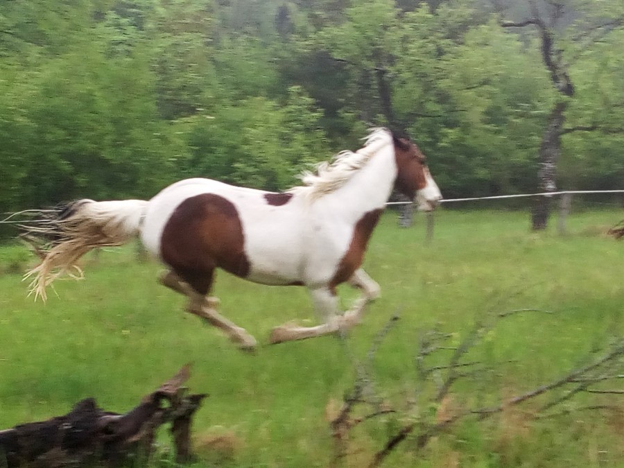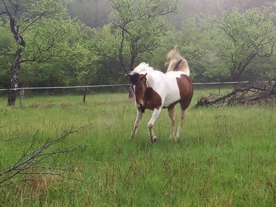 Arrive la bas , on se rend Compte que le climat est correct malgré le vent . J ai B , le petit pie que j avais envisagé d acheter avant Salty . Il a bien changé depuis , plus du caractère et sa bouche n est plus la même