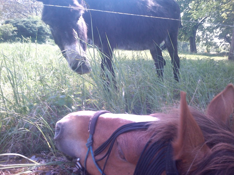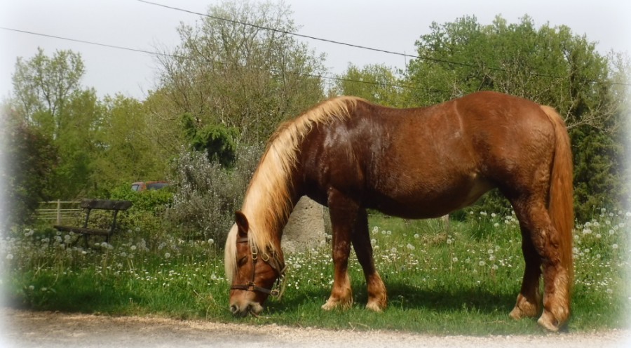Il sort plusieurs heures par jour au paddock pour brouter, avec ses copains dans les paddocks autours.