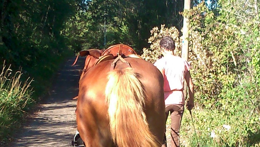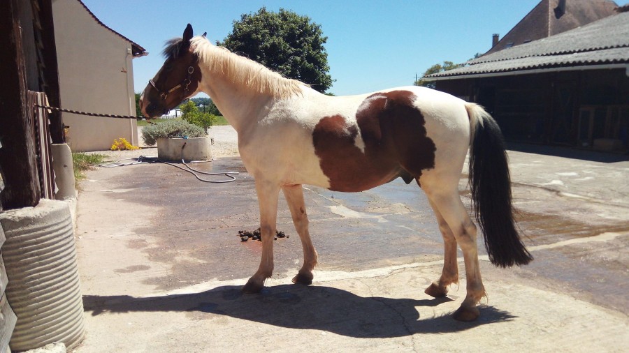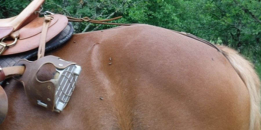 En revanche j'ai deux soucis : le premier c'est la selle, trop longue ! et l'arçon ne convient pas ; le deuxième n'est pas un problème en soi mais une donnée à prendre en compte, mon cheval a plus de 15 ans, c'est sûr. Pour l'ostéopathe, c'est un cheval qui est très bien dans son corps, bien entretenu malgré le manque d'activité, il voyagera sans problème encore bien des années.