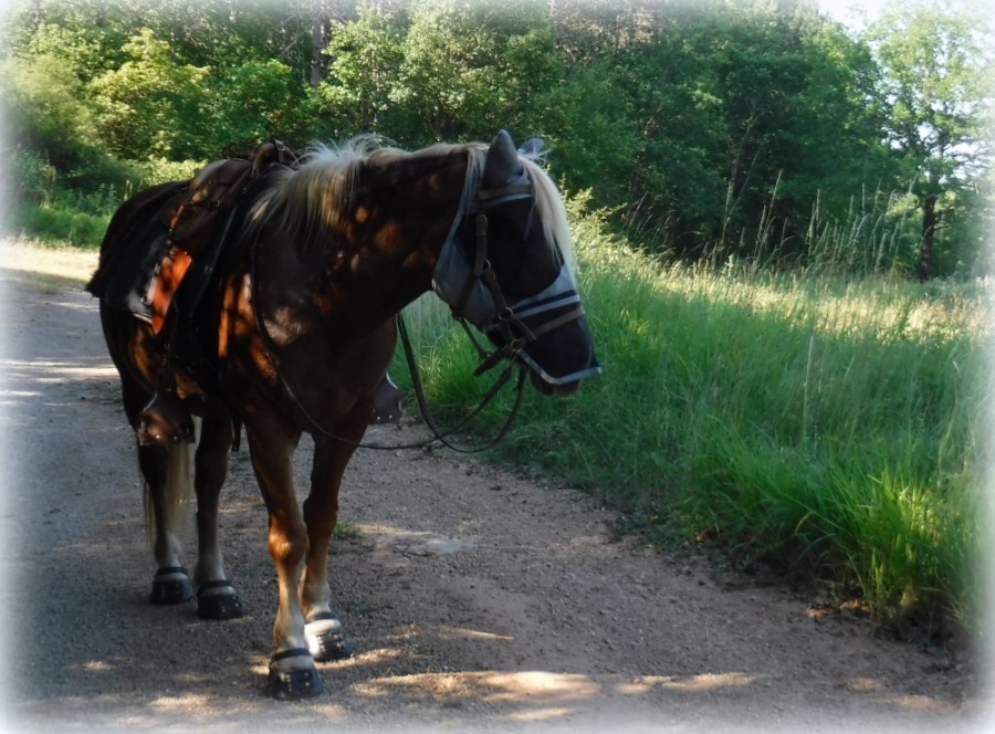 Salty a été topissime !!! Bon , il en a bien profité le filou . J ai passé pas mal de temps à l attendre parce qu il s arrêtait pour brouter tous les 2 m .