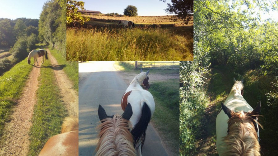 Même chose lorsque je suis allée chercher la selle chez mon amie, plus de 5km à l'aller, retour par le même chemin. J'étais à pied cette fois-ci, mais j'en ai vite eu marre d'avoir la longe de la main. Tout au pas à l'aller, libre sur la seconde moitié puis le retour complètement libre en commençant par 2km de footing/trot actif.