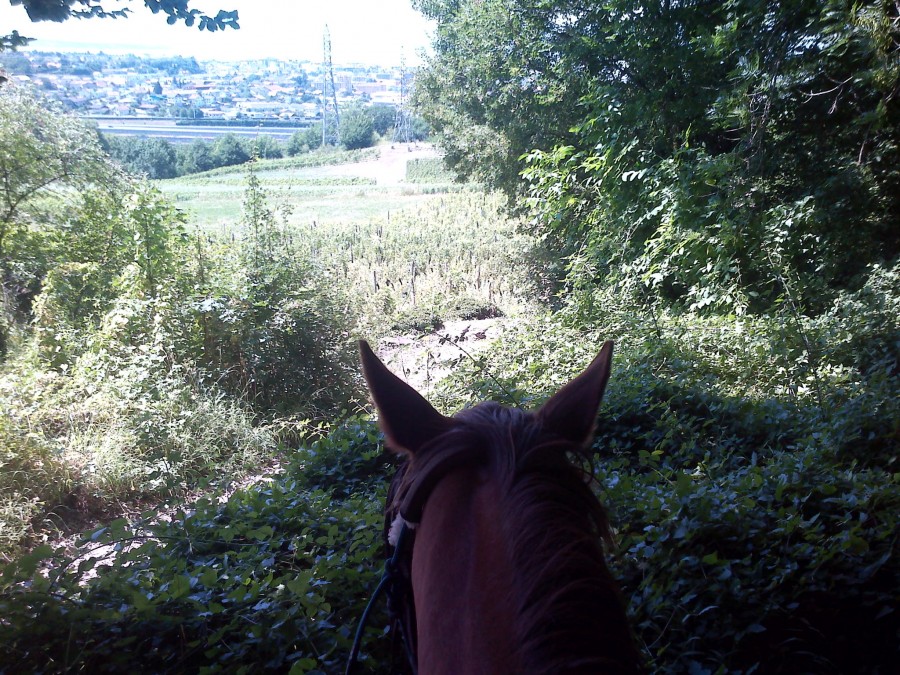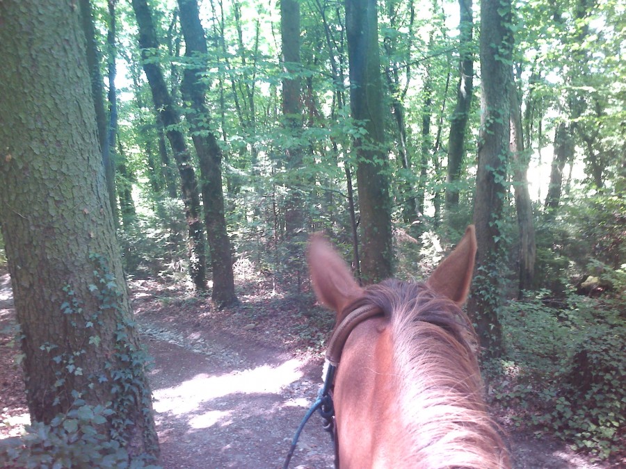 Mais l equipalazone a fait effet , je suis donc partie en balade vers 19h ( encore plus de 30 ) en main avec une autre cavalière . Salty était très motivé , la Pas allant , j étais contente .
