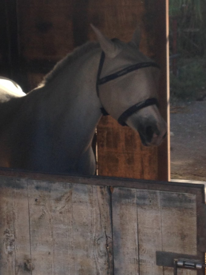 Et voici Salty dans un box , rien de grave je vous rassure . Aujourd hui les paddock étaient vidés au tractopelle il était donc enfermé pour la matinée . C est la que je vois que la clinique l à calmé , après 2 secondes d hésitation , il est rentré dedans et hop ! La tête dans le foin .