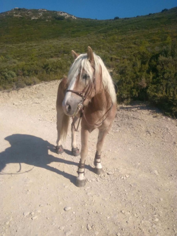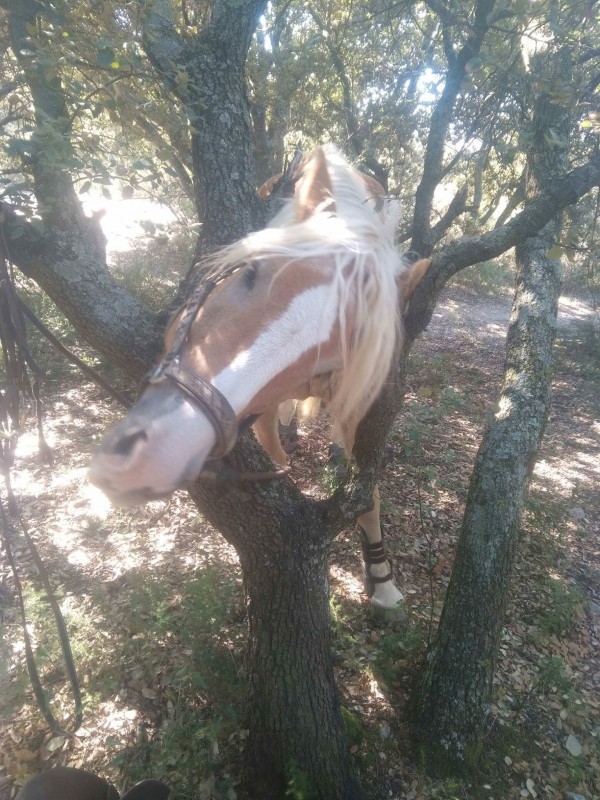 Puis je redescends pour passer dans le village, et là il est tout mignon, il pose son nez sur mon bras, comme pour me demander si ça va. Quand je peux, je remonte, mais il est stressé, sursaute pour pas grand chose (et ça me fait très mal), mais ensuite j'ai l'impression qu'il comprend qu'il doit me ramener aux écuries, tout simplement. J'ai pas de cartouche de rechange, mais je suis pas capable de marcher une heure dans mon état : et pourtant, je me suis sentie en sécurité sur son dos. Il a vraiment pris soin de moi, peut-être qu'on peut penser que j'hallucine, mais il prenait sur lui malgré le stress que ça lui a provoqué, il a mis de côté ses envies de trot et de galop comme il me fait constamment dès que le terrain est bon, fin, je l'ai trouvé exceptionnel. J'ai fait les deux derniers kilomètres à pieds quand j'ai senti que ça allait mieux, et finalement, marcher m'a fait beaucoup de bien (mais j'aurais jamais pu me faire les sept kilomètres je pense).