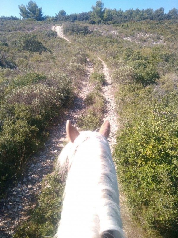 Je finis de manger, puis je remonte, et là, il me fait clairement comprendre qu'il est pas fatigué pour un sous, mais c'est la zone où on peut pas faire d'allures. Donc on continue d'un super bon pas, on se trompe de chemin, mais c'est pas grave on est contents et finalement, tous les chemins mènent à Rome.