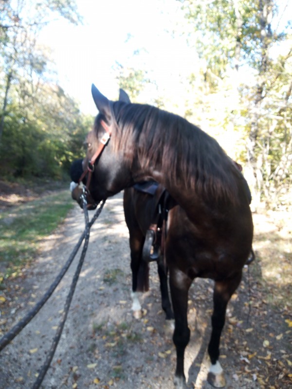 Ca n'a rien à voir avec la balade, mais j'ai eu l'autorisation de la proprio pour m'occuper de son étalon. Ca fait des mois que j'ai craqué dessus, sauf qu'il est cloitré en box, jamais manipulé... et elle a enfin dit ouiii (il est tout démusclé, donc ça sera que du travail à pieds, mais ça me suffit amplement, il a un petit quelque chose qui m'attire) et l'endurance est confirmée, on part en club 2 le 21 octobre Je suis surexcitée !!!!