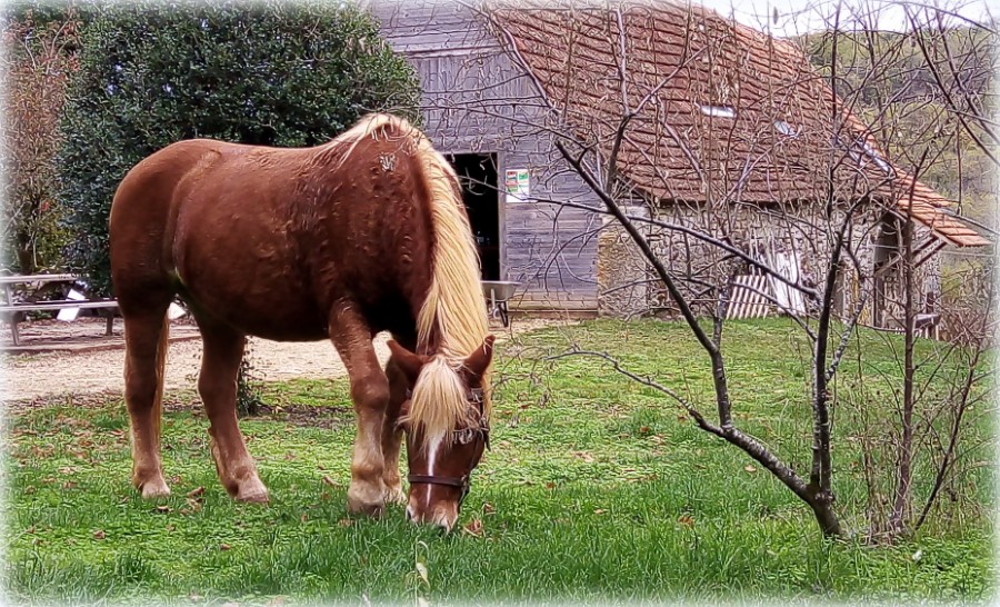 je suis une périgourdine, j'ai 3 chevaux chez moi, Velours un hongre TF de 2009 réformé des courses, Daïkhan un poulain DSA cremello de 2013 et plus récemment, Blondinette une jolie comtoise chocolat de 2004. Je balade surtout, avec mes 2 "grands" et prends aussi 1 cours par semaine en CE, parfois avec Velours car c'est à une demi-heure à cheval.