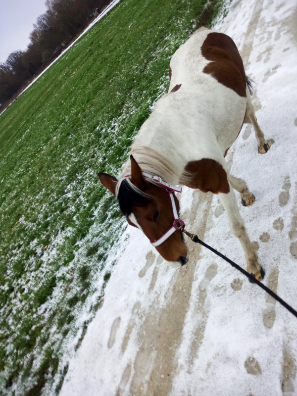 On est donc rentrés, à pied, en coupant au plus court, mais impossible de marcher vite car il se traînait, et j'ai eu froid. Mais je ne peux pas lui en vouloir, le pauvre. Pas habituée à marcher aussi lentement avec lui, l'allure poneyscargot traduit un problème quelque part (ou parfois, des températures trop élevées, l'été, qui le ramolissent complet)