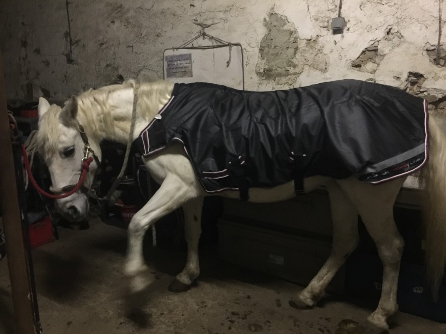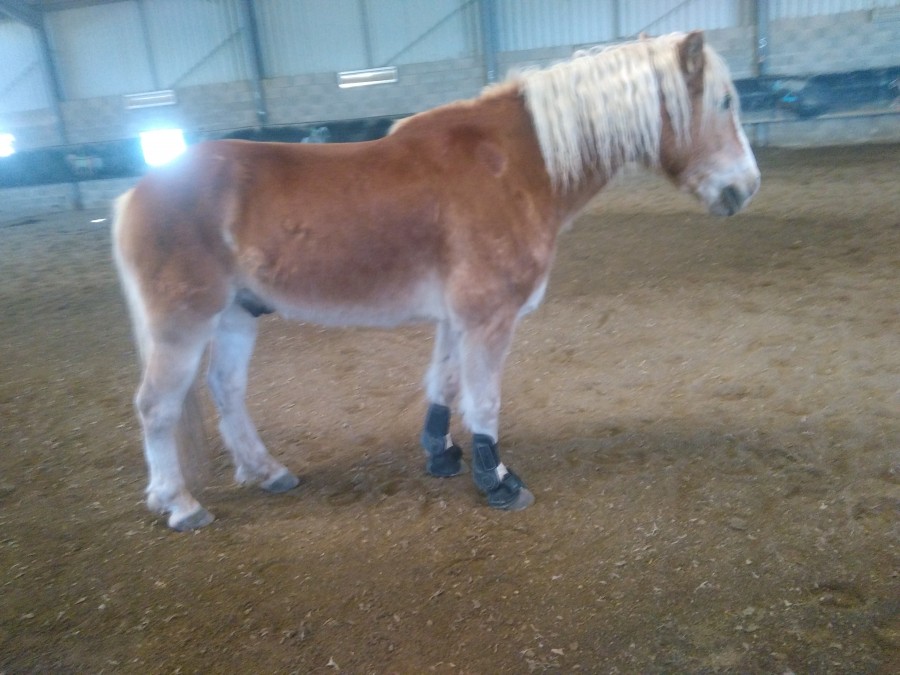 Aujourd'hui à défaut de partir en balade pour cause de temps incertain et pluvieux et après avoir vu que le poids ne la dérangeait pas. J'ai décidé de tester la selle sur le dos de louloute !