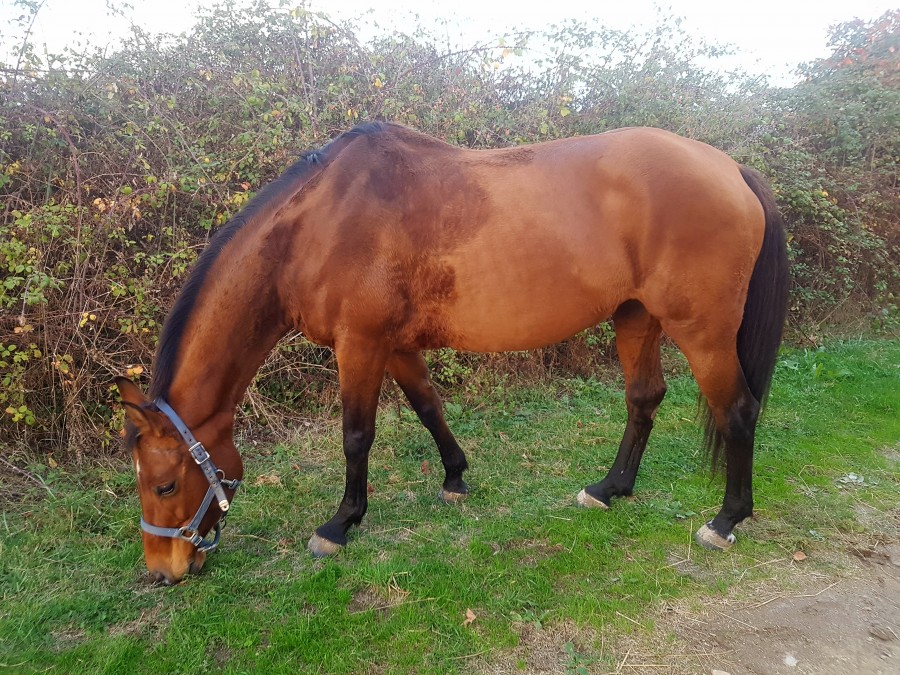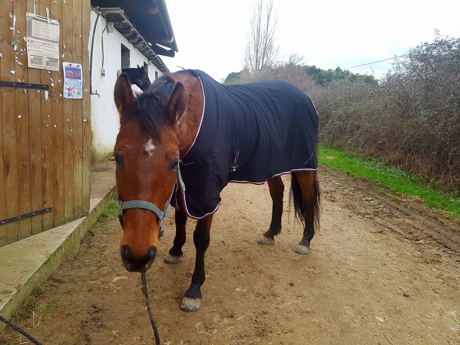après nettoyage de la dalle béton et autour du ratelier je me suis appuyée de tout mon poids sur le dos de Gédézel, aucune réaction ... Même pas un oeil inquiet ...